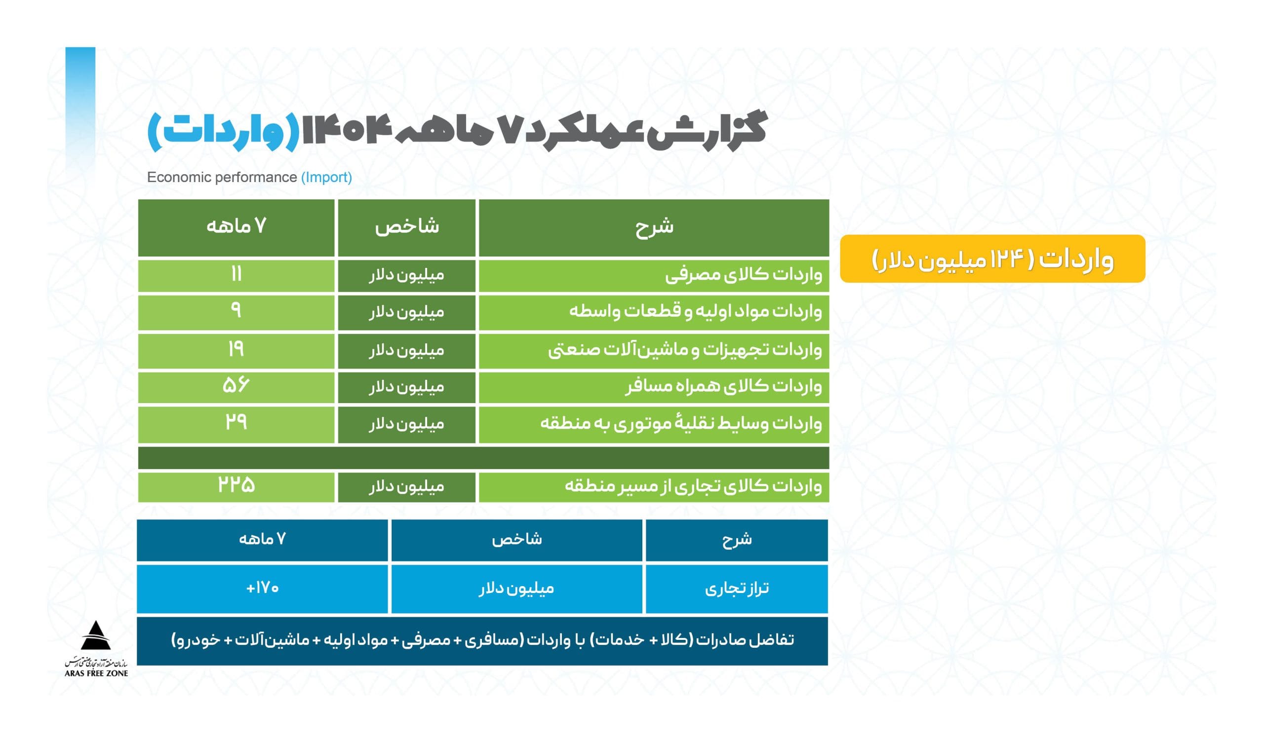 گزارش عملکرد سازمان منطقه آزاد تجاری و صنعتی ارس